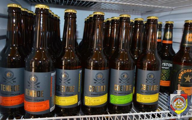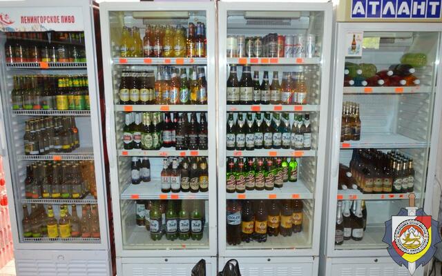 Оперативники обнаружили на торговом объекте бутылки шампанского, водки, пива, коньяка, ликера и слабоалкогольных напитков с этикетками известных брендов.