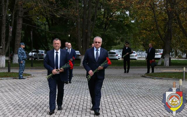 После официальной части мероприятия делегация МВД Южной Осетии посетила музей Главного управления, а также возложила цветы к Мемориалу погибшим при исполнении служебных обязанностей сотрудниками Главного управления МВД России по СКФО.