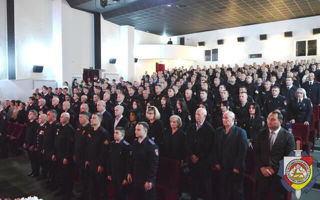 Торжественное мероприятие своим выступлением открыл министр внутренних дел Эрислав Мамиев. Глава ведомства отметил, что обеспечение государственной и общественной безопасности – основная задача, которая возложена на каждого сотрудника ОВД.