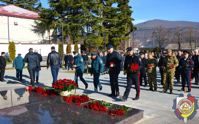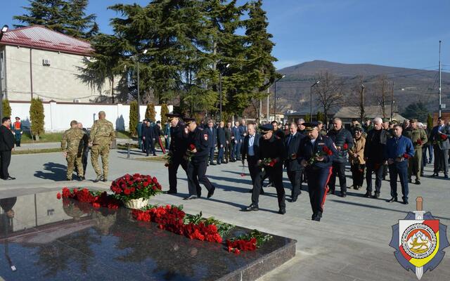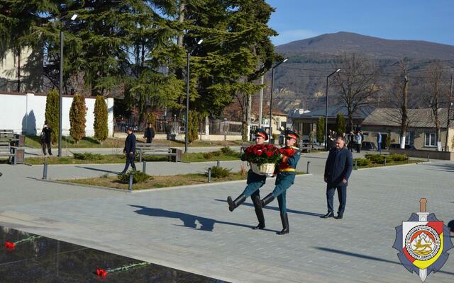 Руководство республики во главе с президентом республики Южная Осетия Аланом Гаглоевым возложили цветы и венки к Мемориалу павшим защитникам Отечества. В памятном мероприятии приняли участие члены Правительства, депутаты Парламента, чрезвычайный и полномочный посол РФ в Южной Осетии Марат Кулахметов, сотрудники госучреждений, министерств и ведомств Южной Осетии, представители общественности и учащиеся СОШ.