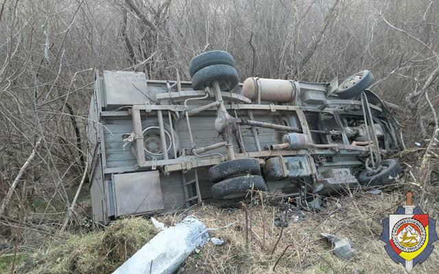 Дорожно-транспортное происшествие произошло на 10-ом километре автодороги Цхинвал-Знаур. Предварительно, водитель автомобиля "Газель" не справился с управлением, в результате чего выехал на полосу встречного движения, столкнулся с опорой ЛЭП и опрокинулся в кювет.