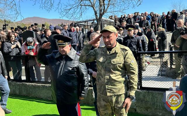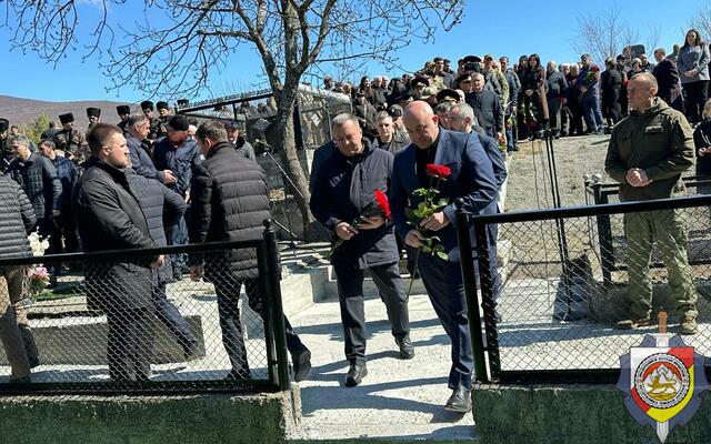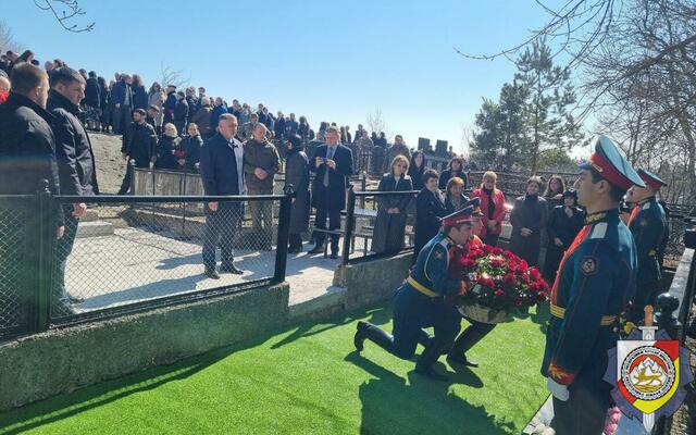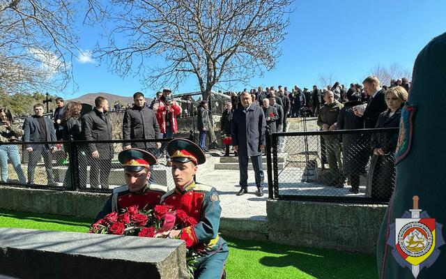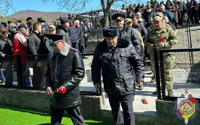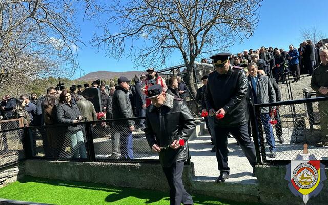 Делегация Министерства внутренних дел во главе с министром внутренних дел, генерал-майором милиции Эриславом Мамиевым приняла участие в церемонии возложения цветов к месту захоронения жертв трагедии.
