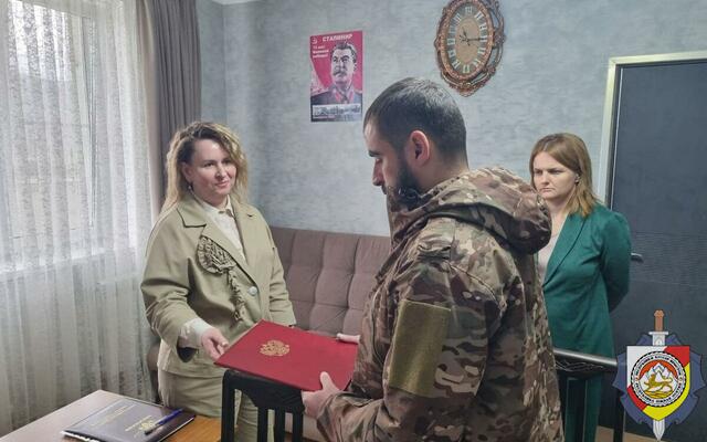 На территории Республики Южная Осетия состоялась официальная церемония вручения внутреннего паспорта гражданина Российской Федерации участнику специальной военной операции. Паспорт вручила заместитель Министра внутренних дел по РСО-Алания по вопросам гражданства и регистрации иностранных граждан полковник полиции Анфиса Кандаурова.